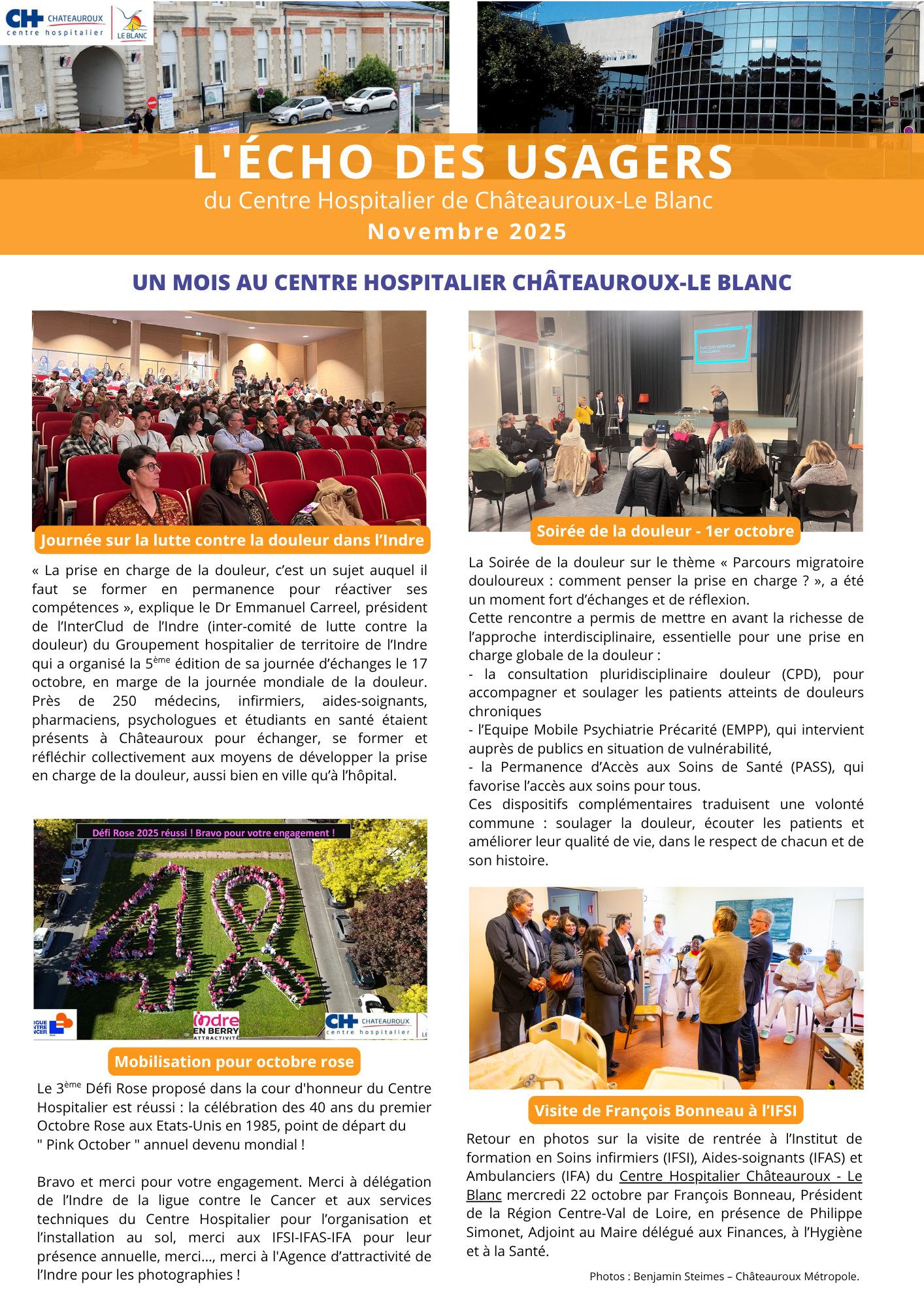 Ce mois-ci, le Centre hospitalier de Châteauroux-Le Blanc met à l’honneur la prise en charge de la douleur avec plusieurs temps forts :