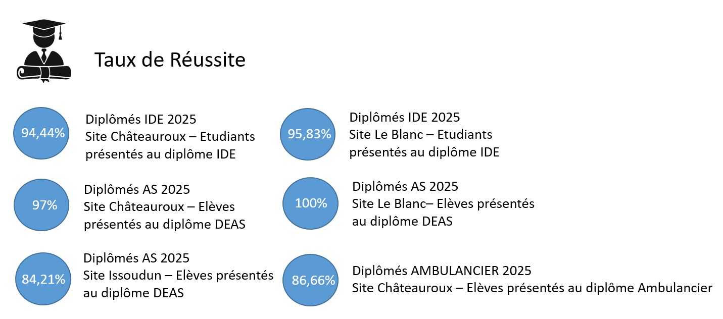 - Des instituts de formation situés au cœur des centres hospitaliers de LE BLANC et de CHATEAUROUX